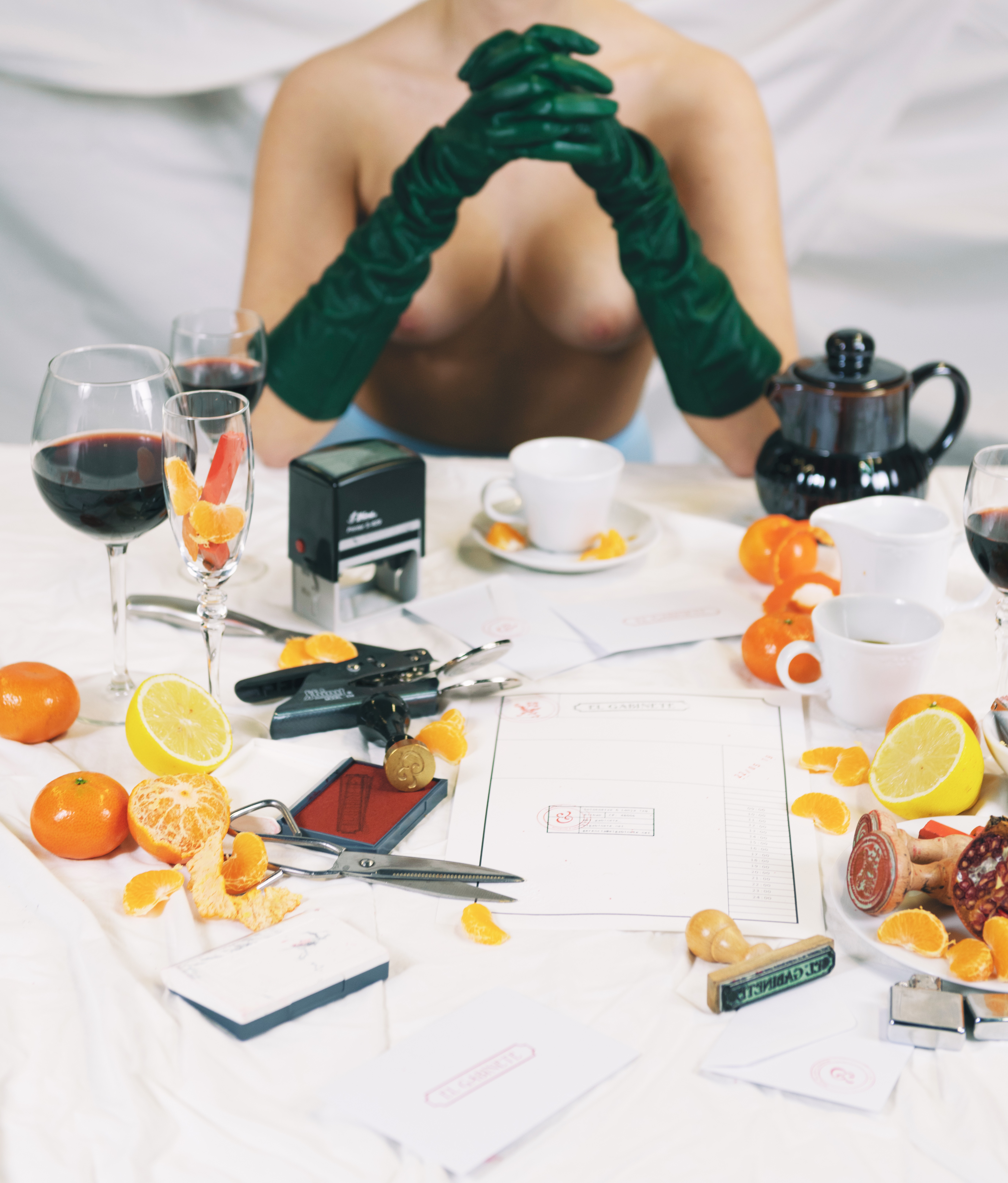 Todo ello se reúne en espacios destinados a la escritura, como fichas de archivo. Golpes secos, marcas de agua, tampones y sellos utilizados soabre un papel de dibujo técnico escolar.
